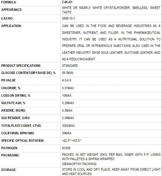 Features:COA OF DEXTROSE MONOHYDRATE_CLPC.pdfMSDS OF DEXTROSE MONOHYDRATE_CLPC.pdfTDS OF DEXTROSE MONOHYDRATE_CLPC.pdf