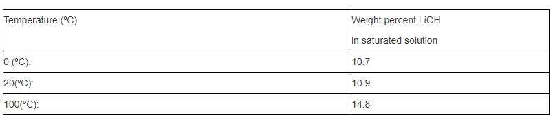 Water solubility: ( Solid phase in equilibrium with saturated solution is the monohydrate, LiOH.H2O.)