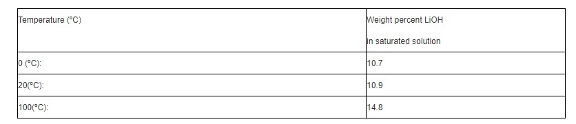 Water solubility: ( Solid phase in equilibrium with saturated solution is the monohydrate, LiOH.H2O.)